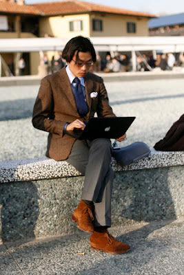 I know it is not "fashionable" to look back to last year for ideas but right now I am preparing my wardrobe for Pitti Uomo in January and the first place I go is my archives. These suede jackets all over Italy. I love the depth of color and lightweight nature.